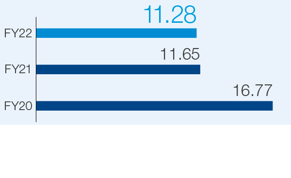 REDUCTION IN SCOPE 1+2 EMISSIONS PER FTE IN FY22