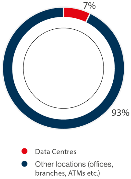 We are committed to collaborating with our data centre service providers to reduce the GHG footprint of our owned and co-located data centres. Currently, data centres contribute 7% of our Scope 2 emissions. This year, we also enhanced our approach towards calculation of Scope 2 emissions. We have stepped up our efforts to collect actual electricity consumption data for estimating corresponding GHG emissions. In doing so, we are prioritising high-consumption locations. In FY22, we collected actual kWh data on electricity consumed from 46% of our locations – which collectively consumed about 50% of electrical energy.