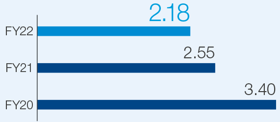 REDUCTION IN SCOPE 1+2 EMISSIONS PER CR INCOME IN FY22tCO2e/ per year