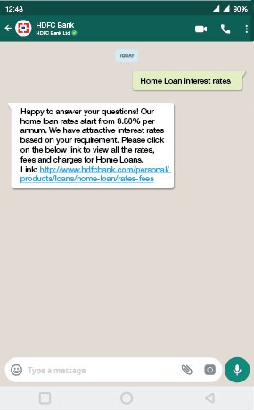 Yes, you can ask any queries related to HDFC Bank’s products or services through WhatsApp Banking. You can also apply for any of our products or request a call back for a product you are interested in. All you need to do is add the number 70700 22222 to your contacts and start a conversation by saying “Hi”
